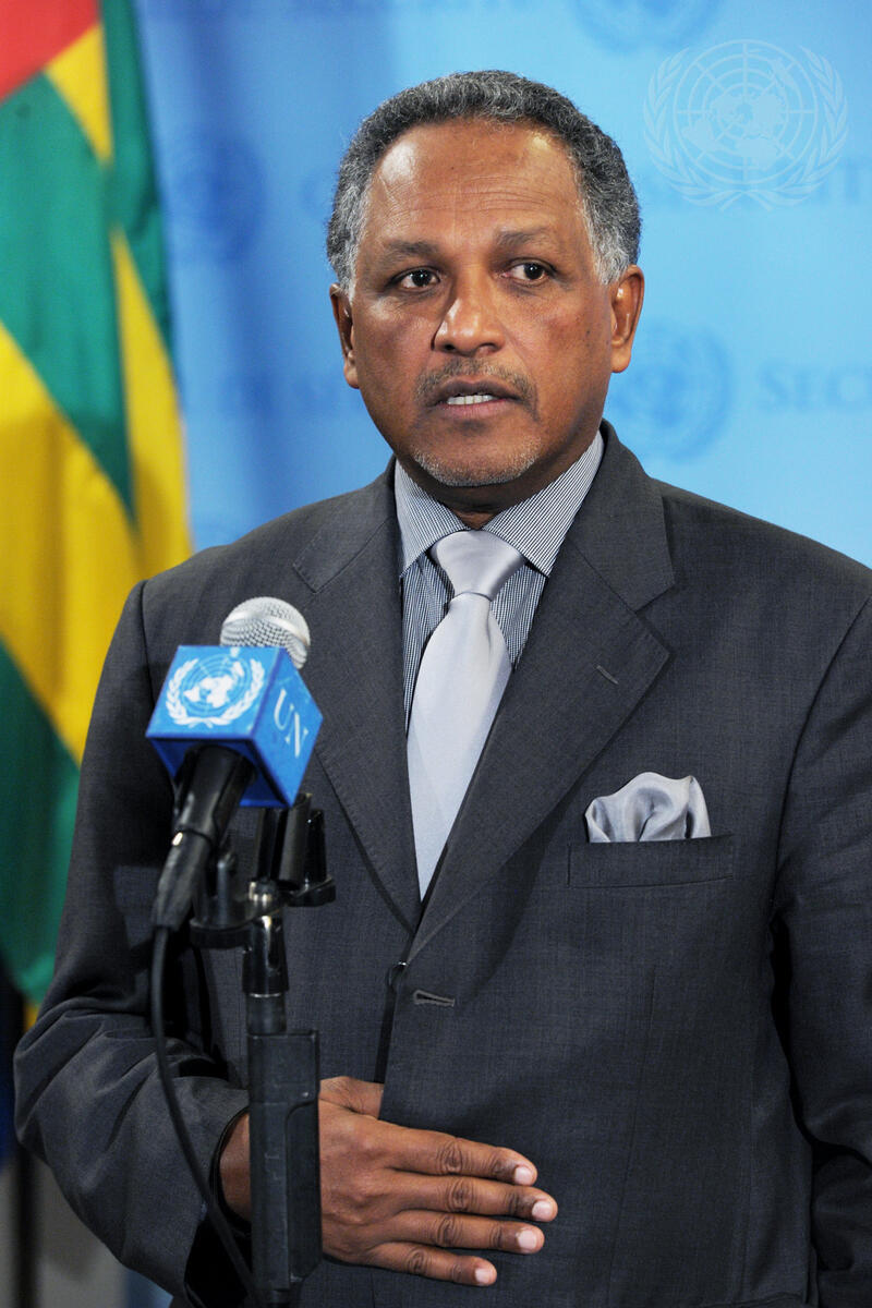 Daffa-Alla Elhag Ali Osman, Permanent Representative of Sudan to the UN, speaks to the media after the Security Council’s meeting on the situation between his country and neighbouring South Sudan. During the meeting the Council issued a presidential statement expressing grave concern over recent cross-border clashes, and urging all parties in both countries, including proxy forces, to cease all military operations in border areas.