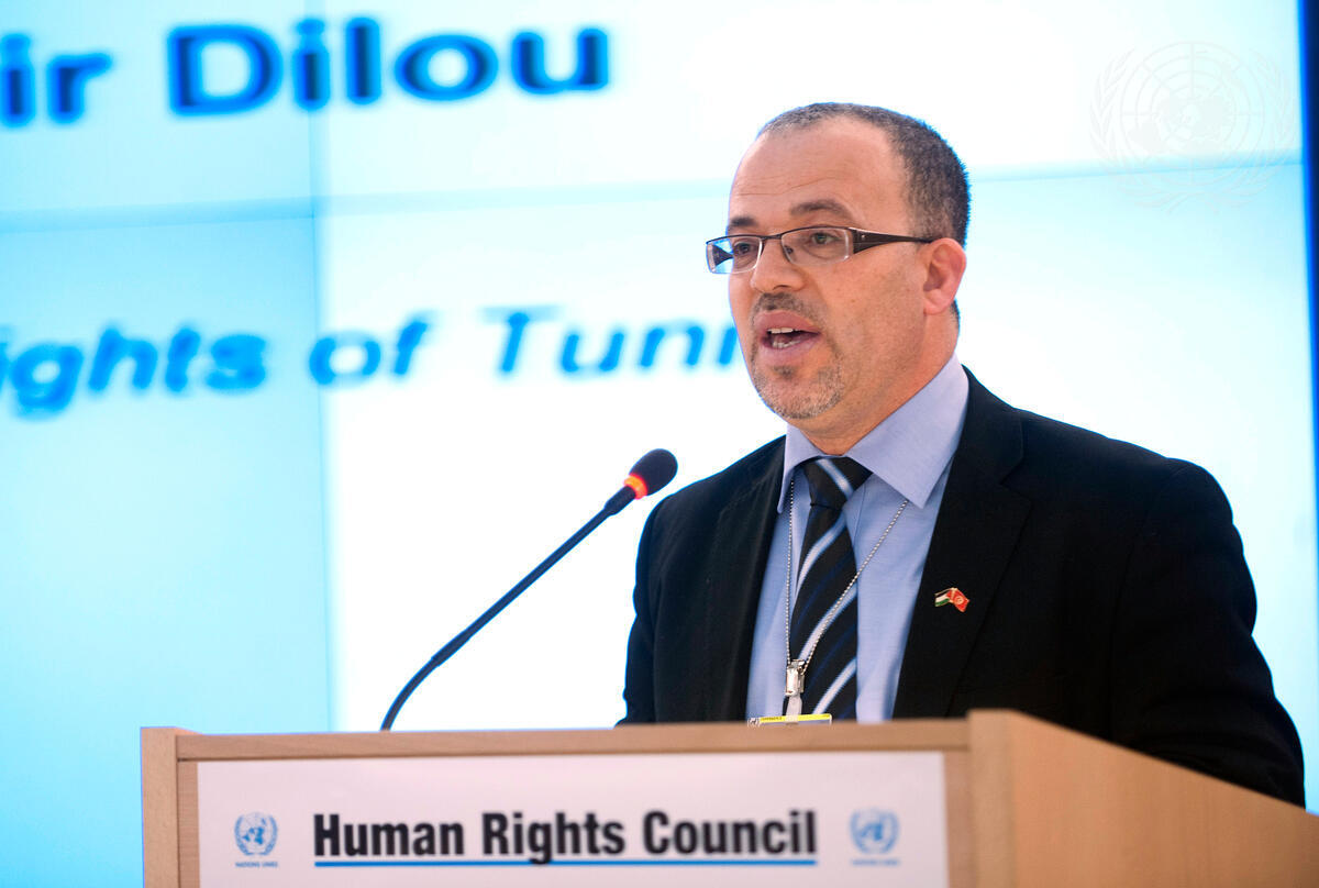 Samir Dilou, Minister for Human Rights of Tunisia, addresses the high-level segment of the 19th session of the Human Rights Council.