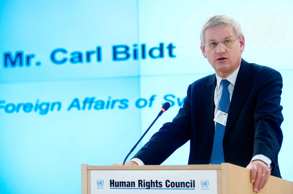 Carl Bildt, Minister for Foreign Affairs of Sweden, addresses the high-level segment of the 19th session of the Human Rights Council.