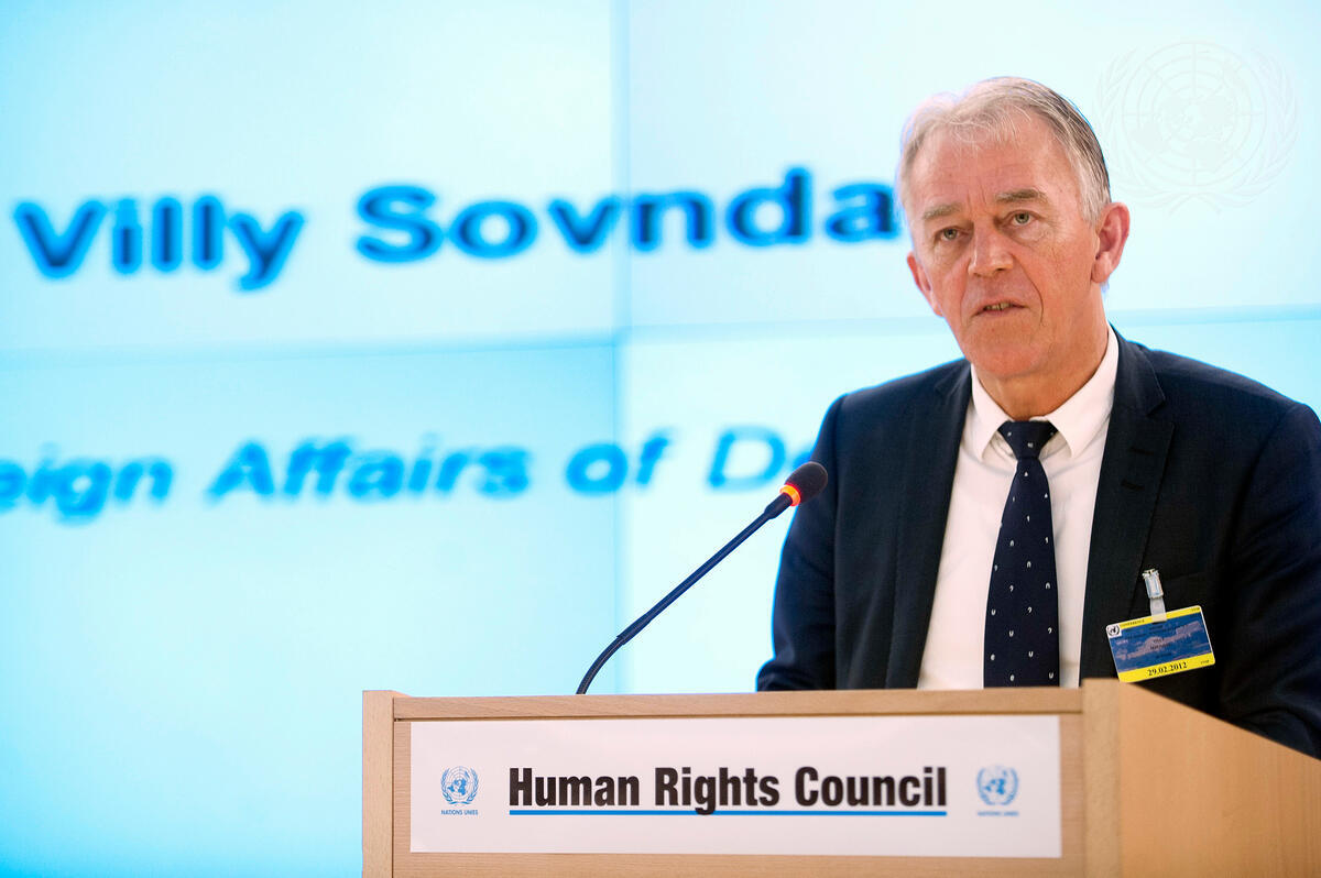 Villy Søvndal, Minister for Foreign Affairs of Denmark, speaking on behalf of the European Union, addresses the high-level segment of the 19th session of the Human Rights Council.