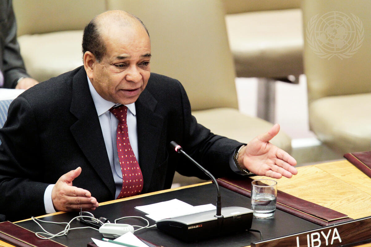 Abdurrahman Mohamed Shalgham, Permanent Representative of Libya to the UN, addresses a meting of the Security Council on the situation in his country.