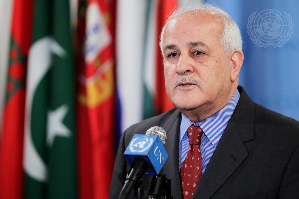 Riyad H. Mansour, Permanent Observer of Palestine to the UN, speaks to the press following the Security Council’s meeting today on the Middle East and the Palestinian question.