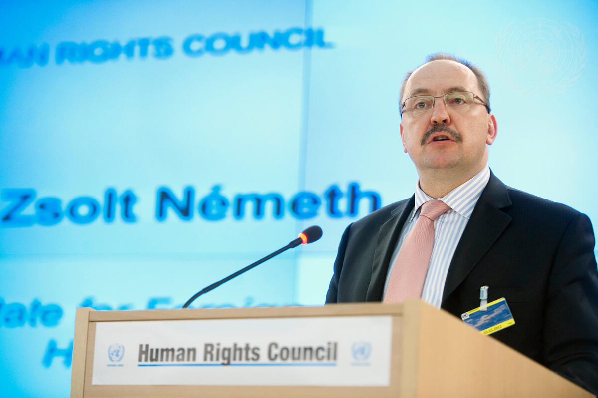 Zsolt Németh, Minister of State for Foreign Affairs of Hungary, addresses the high-level segment of the 19th session of the Human Rights Council.