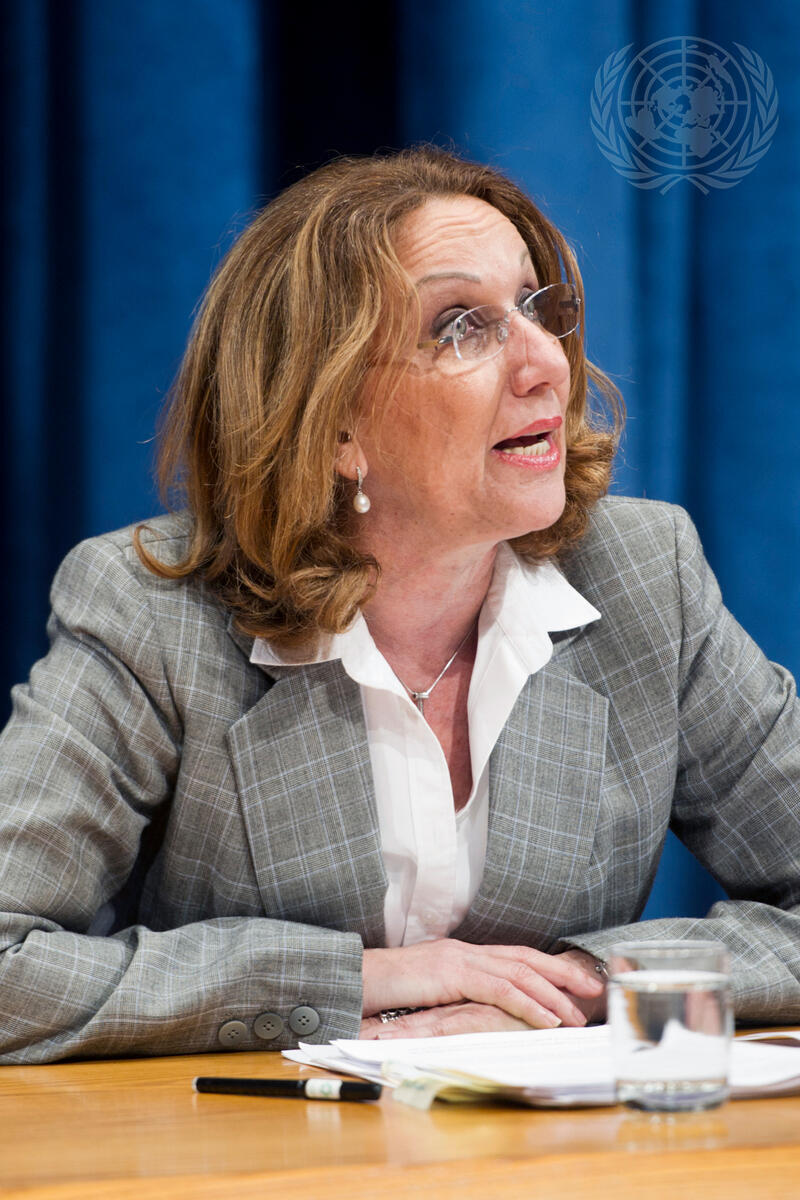 Rebeca Grynspan, Associate Administrator of the UN Development Programme (UNDP), pictured during a press conference to take stock of global progress made on the Millennium Development Goals (MDGs). Recent milestones achieved on poverty and water were discussed, as well as the way forward on remaining challenges and actions to be taken to accelerate progress in the run-up to 2015.