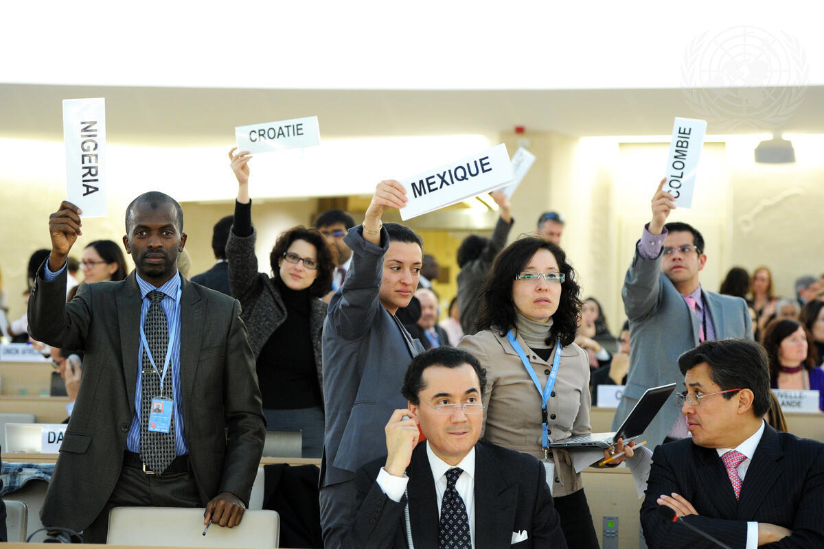 Delegates request the floor during the Human Rights Council’s panel discussion on discriminatory laws and practices or acts of violence against individuals based on their sexual orientation and gender identity.