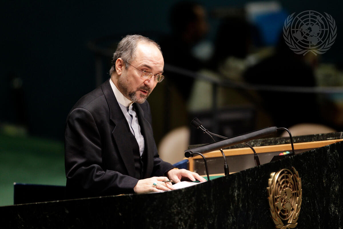 Mohammad Khazaee, Permanent Representative of Iran to the UN, addresses the General Assembly after a report from Secretary-General Ban Ki-moon on the Assembly’s 16 February resolution concerning Syria. The resolution, which requires the Secretary-General to update the Assembly on its implementation, strongly condemns human rights abuses by the Syrian Government and calls for an end to all violence in the country.
