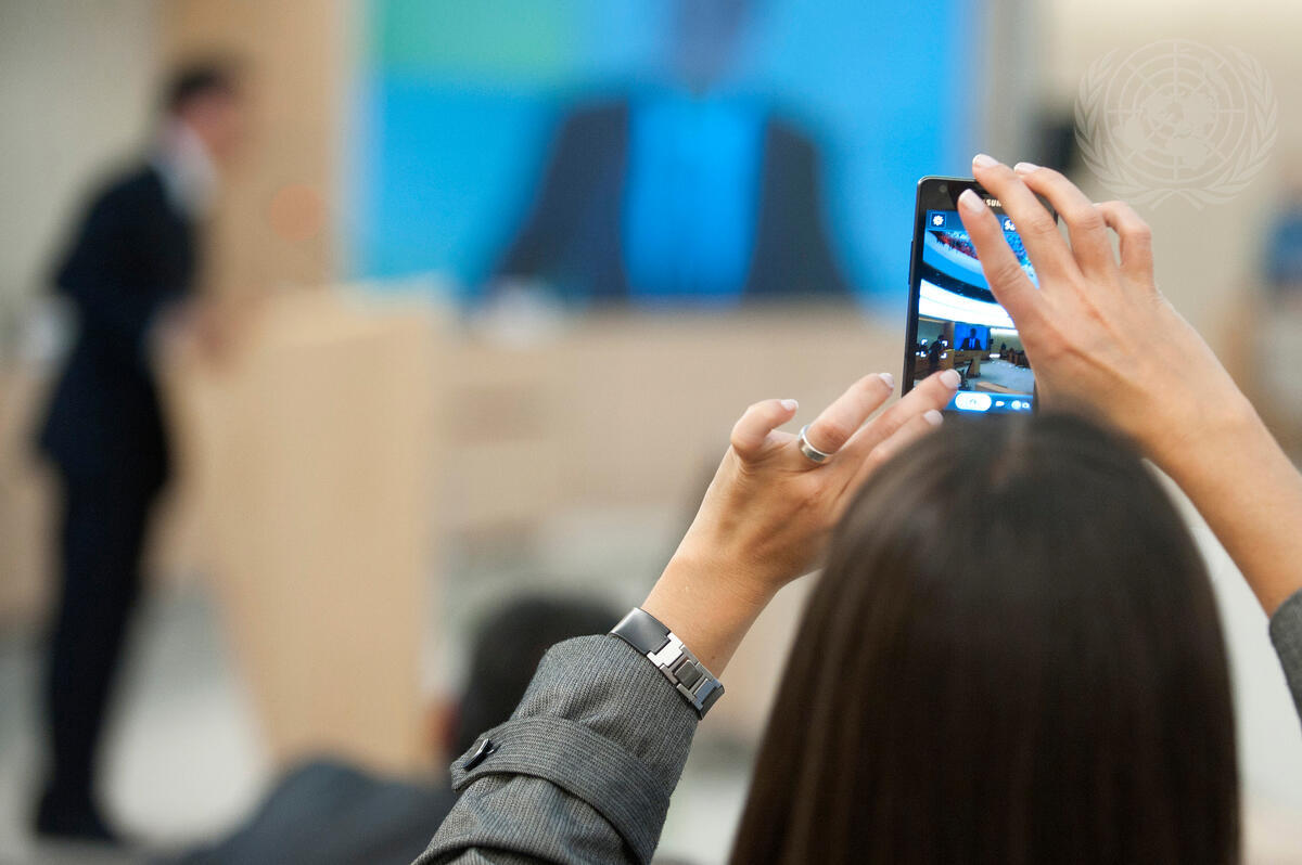 A delegate snaps a photo with her iPhone during the high-level segment of the Human Rights Council’s 19th session.