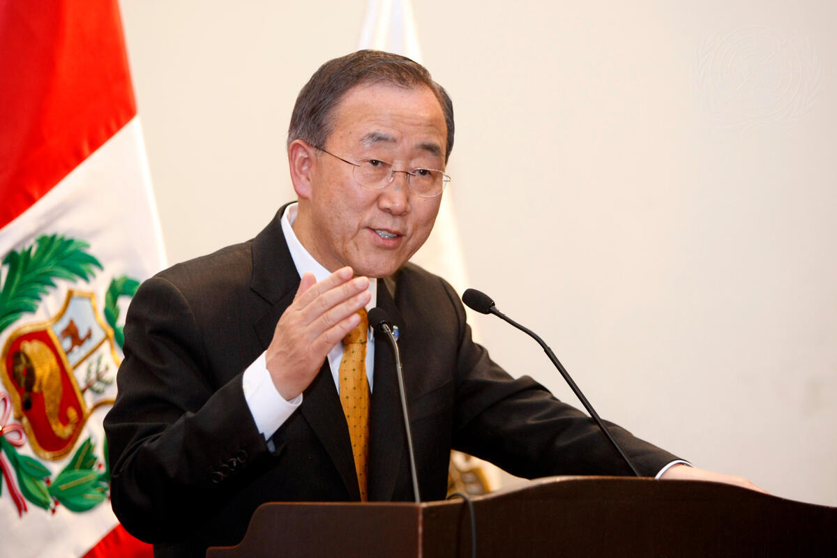 Secretary-General Ban Ki-moon addresses students and professors at the National University of San Marcos in Lima, Peru, where he received a Doctor Honoris Causa.