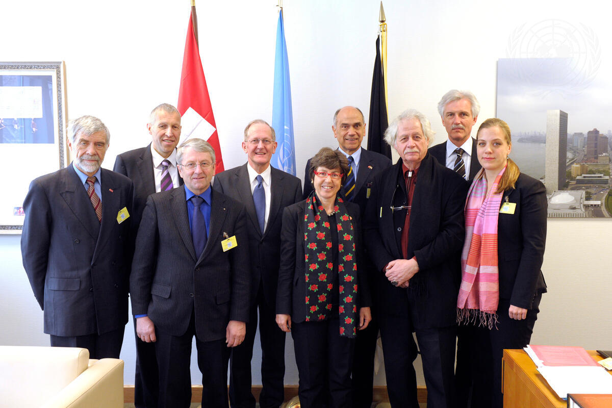Joseph Deiss (back, second from left), President of the sixty-fifth session of the General Assembly, meets with a delegation of Members of Parliament from Switzerland, Mr. Deiss’ home country.