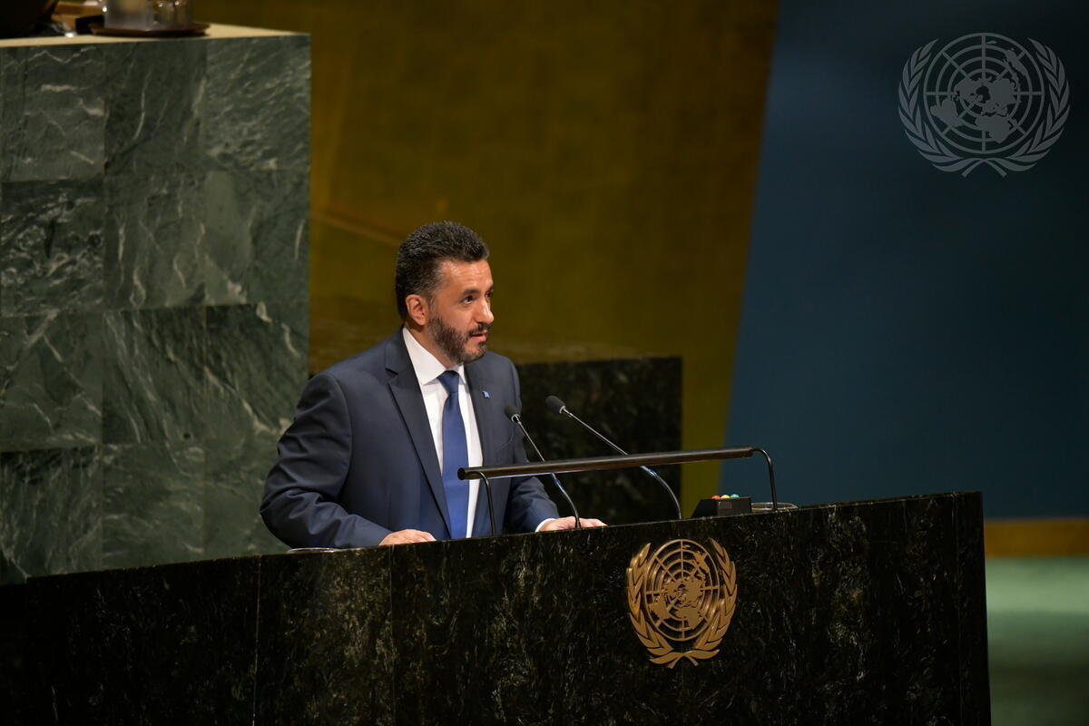 Sacha Sergio Llorentty Solíz, Permanent Representative of Bolivia to the UN, introduces the draft resolution, which was co-sponsored by Bolivia, Canada, Chile, Cuba, Ecuador, Fiji, Kazakhstan, Paraguay, Peru and Saint Vincent and the Grenadines.