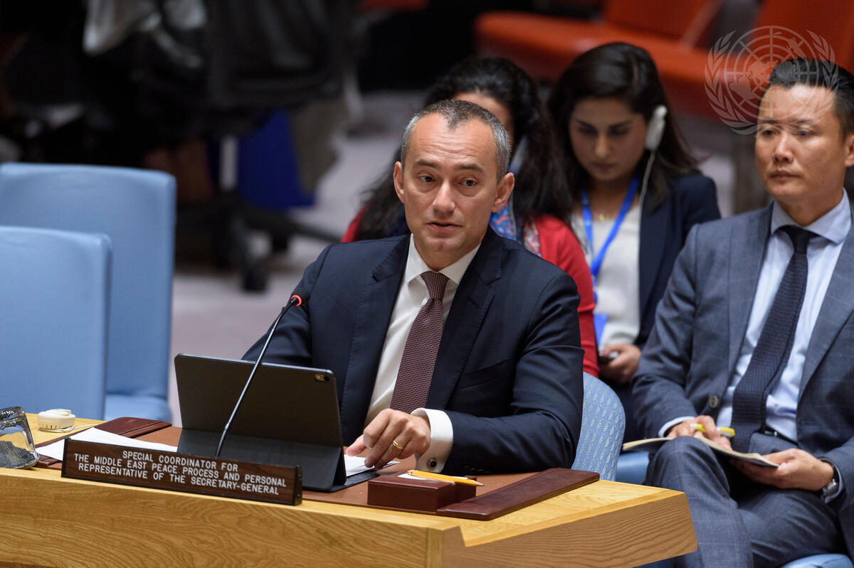 Nickolay Mladenov, UN Special Coordinator for the Middle East Peace Process and Personal Representative of the Secretary-General to the Palestine Liberation Organization and the Palestinian Authority, briefs the Security Council on the situation in the Middle East, including the Palestinian question.