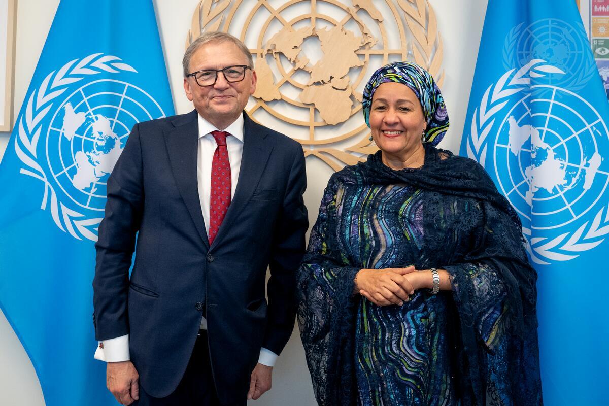 Deputy Secretary-General Amina Mohammed (right) meets with Boris Titov, Special Representative of the President of the Russian Federation for relations with International Organizations.
