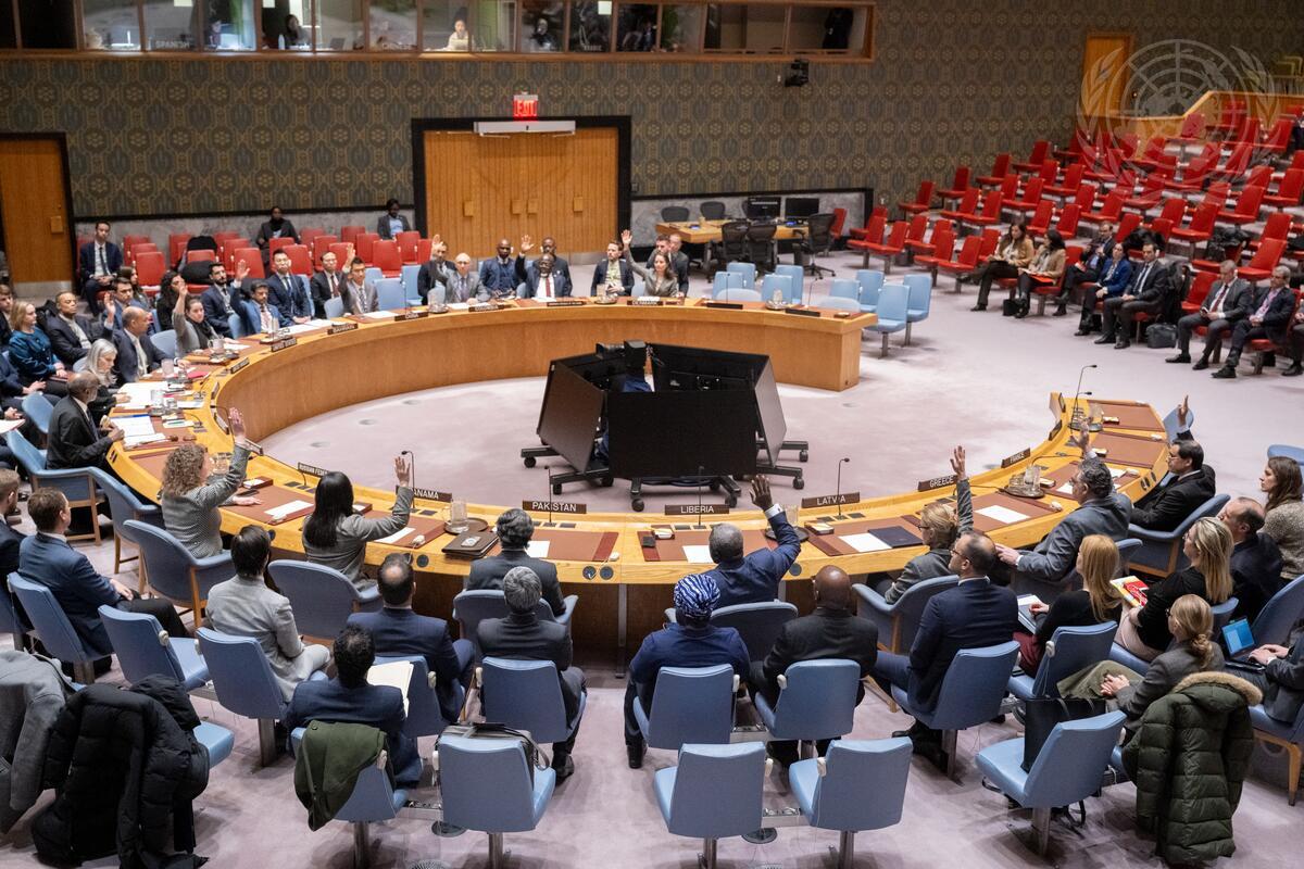 The Security Council is seen voting to adopt a draft resolution extending the mandate of the United Nations Peacekeeping Force in Cyprus (UNFICYP) for a further period ending on 31 January 2027. The vote was 13 in favor, with 2 abstentions.