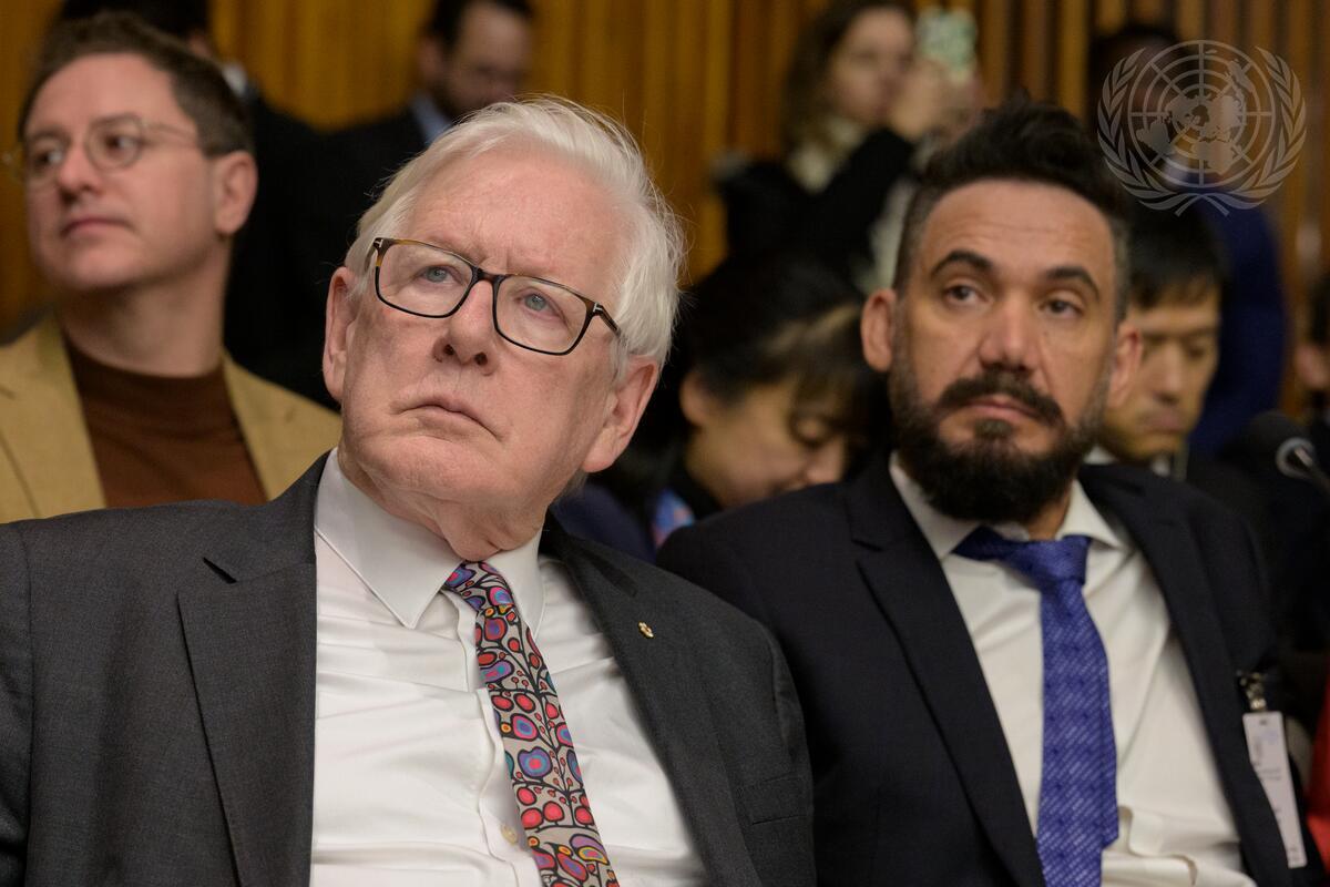 Robert Rae (left), President of the United Nations Economic and Social Council (ECOSOC) for its 2024-2025 session, and Eduardo Kobra, Artist, attend the special meeting on the commemoration of the eightieth anniversary of the Economic and Social Council entitled “ECOSOC80: A Turning Point for Multilateralism”.