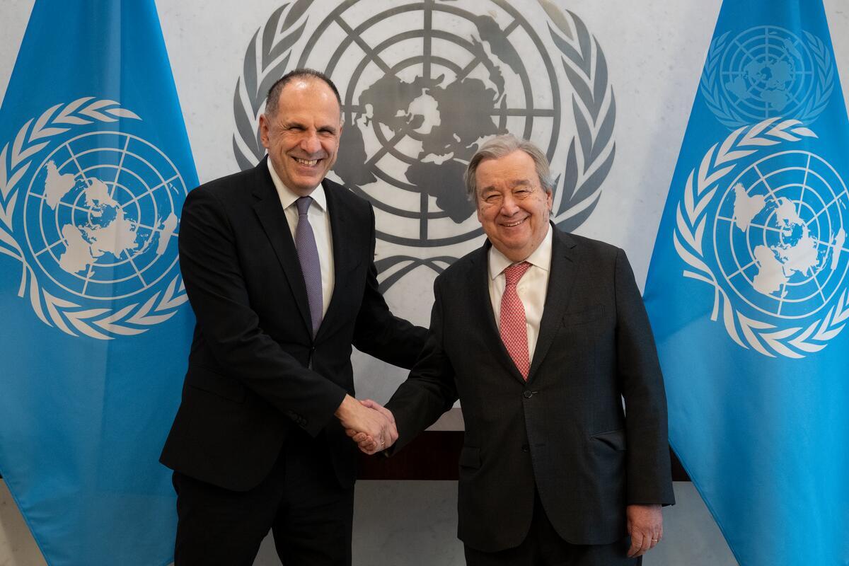 Secretary-General António Guterres (right) meets with Georgios Gerapetritis, Minister for Foreign Affairs of the Hellenic Republic.