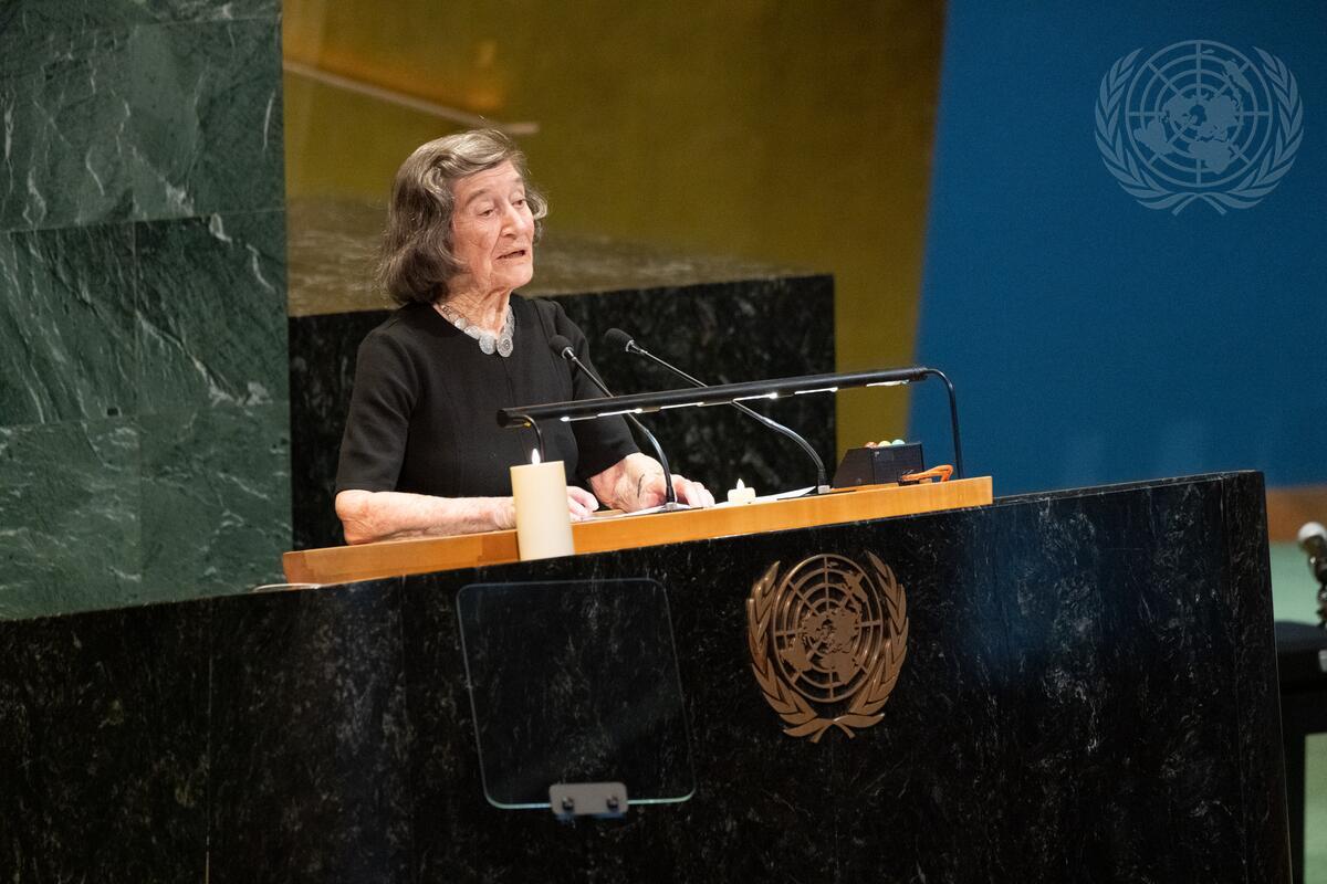 Evelyn Konrad, Holocaust survivor, addresses the United Nations Observance of International Day of Commemoration in memory of the victims of the Holocaust on the theme "Holocaust Remembrance for Dignity and Human Rights".