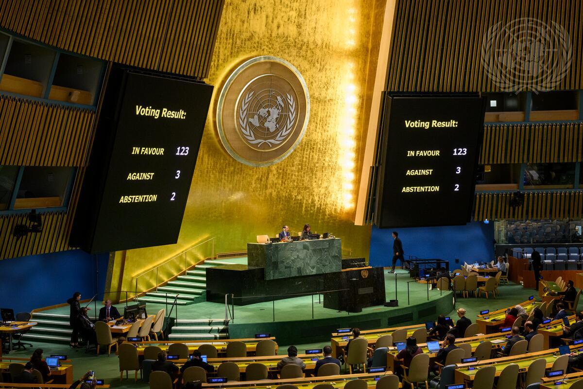 The General Assembly votes on a draft resolution proclaiming 5 September as the International Day of the World’s Indigenous Women and Girls during the 51st plenary meeting of the General Assembly.
