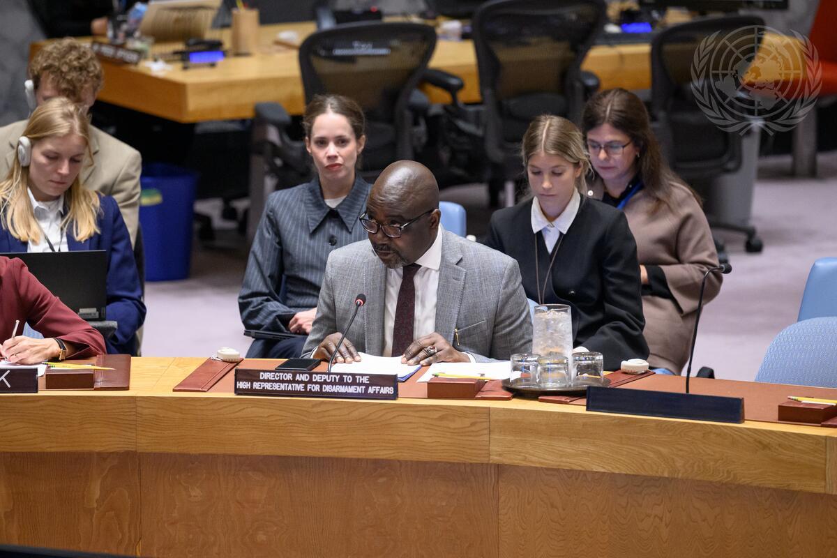 Adedeji Ebo, Officer-in-Charge and Deputy to the High Representative of the United Nations Office for Disarmament Affairs, briefs the Security Council meeting on small arms. The Council heard a report of the Secretary-General on Small arms and light weapons.
